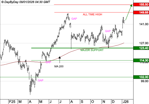 La tendance de fond est clairement orientée à la hausse. Les cours progressent toujours.