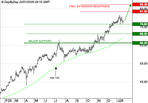 La tendance de fond est clairement orientée à la hausse. La correction en cours gagne en vigueur.