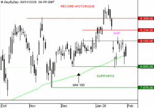 Analyse DBD CARREFOUR SA : La tendance de fond est clairement orientée à la hausse. DBD 29 janvier 2026