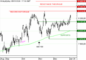 Analyse DBD APPLIED MATERIALS : La tendance de fond est clairement orientée à la hausse. DBD 7 janvier 2026