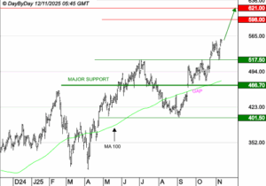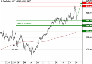 Analyse DBD MICRON TECHNOLOGY : La tendance de fond est clairement orientée à la hausse. DBD 10 novembre 2025