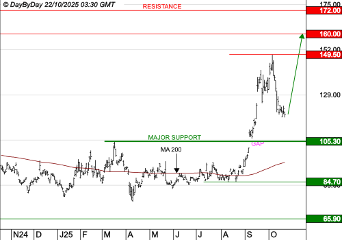 Les objectifs suivants sont à 149,5000 $ et 160,0000 $. La tendance serait invalidée sous le support à 105,3000 $.