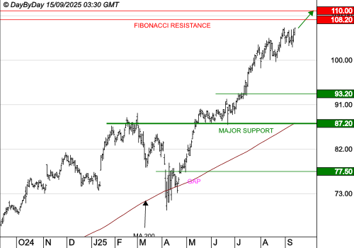 La tendance de fond est clairement orientée à la hausse. Les cours progressent toujours.