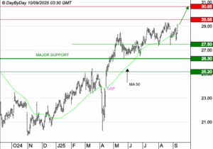 Analyse DBD ORACLE CORP : La tendance de fond est clairement orientée à la hausse. DBD 10 septembre 2025