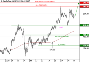 Analyse DBD ESSILORLUXOTTICA : La tendance de fond est clairement orientée à la hausse. DBD 8 décembre 2025