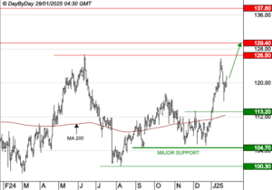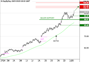 Analyse DBD PHILIP MORRIS INTERNATIONAL : La tendance de fond est clairement orientée à la hausse. DBD 29 janvier 2025
