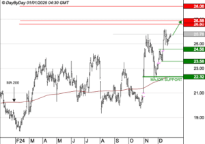 Analyse DBD TECHNIP ENERGIES NV : La tendance de fond est clairement orientée à la hausse. DBD 1 janvier 2025