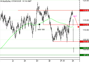 Bourse Vente du Turbo24 SHORT EXXON MOBIL DE000A24Y6C6, K.O à 122,344, à 2 ,14 € (+98%) OTFY 7 avril 2025