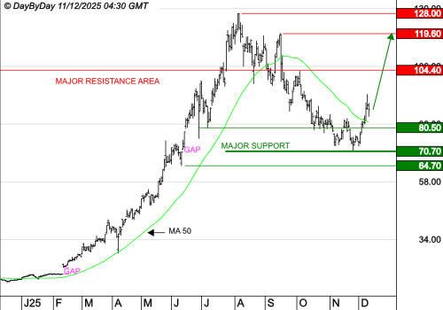 Les objectifs suivants sont à 12,72 € et 13,94 €. La tendance serait invalidée sous le support à 6,90 €.