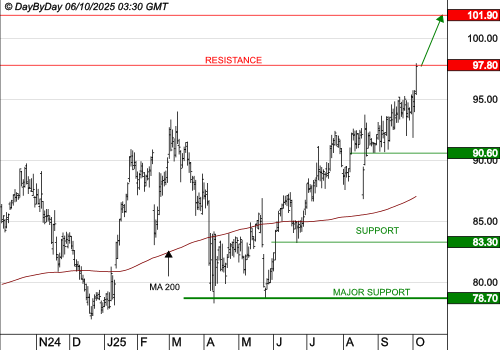 La tendance de fond est clairement orientée à la hausse. Les cours progressent encore, mais le mouvement montre moins de puissance.