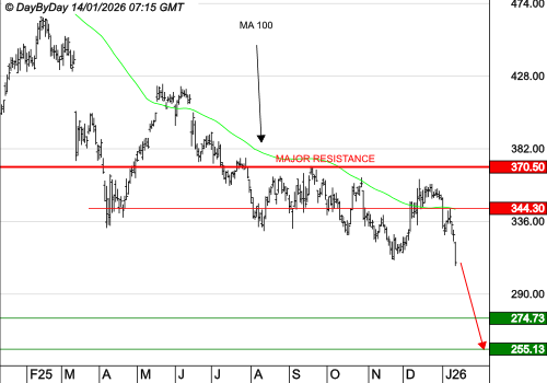 Il est trop tôt pour parler de retournement baissier. La tendance serait invalidée sous le support à 354,4400 $.
