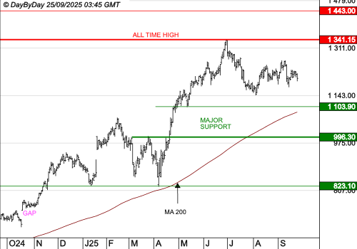 Les objectifs suivants sont à 1 397,0000 $ et 1 450,0000 $. La tendance serait invalidée sous le support à 822,7000 $.