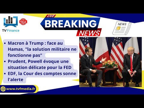 – Macron à Trump : face au Hamas, “”la solution militaire ne fonctionne pas”” – Prudent, Powell évoque une situation délicate pour la FED – EDF, la Cour des comptes sonne l’alerte Les actualités TVFinance par Roselyne Pagès , en Direct à partir de 8H55. —————————————————————————————————– Dans ces vidéos, TV Finance vous plonge au cœur des marchés financiers pour décrypter les mouvements clés et les tendances qui impactent vos investissements. Chaque jour, nous vous offrons une analyse approfondie et des perspectives claires sur l’actualité économique et boursière. 🔔 Abonnez-vous à la chaîne pour ne manquer aucune de nos analyses : https://www.youtube.com/@TVFinance 📌 Suivez-nous et rejoignez notre communauté sur 🔹 https://x.com/TV_Finance 🔹 https://www.linkedin.com/in/r%C3%A9daction-tv-finance/ 🔹 https://www.instagram.com/tv_finance/ 🔹 https://www.facebook.com/tvfinance 🔹 https://www.tiktok.com/@tvfinancelive 👉️ Visitez notre site web pour plus d’informations : https://www.tvfmedia.fr/ 📈 Abonnez vous au service d’analyses et de recommandations de Day By Day, un service professionnel pour investisseurs privés https://www.daybyday.fr/ Découvrez son nouveau service PEA pour une valorisation à long terme de votre épargne, combinant fondamental et technique. 🎬️ https://youtu.be/PJA6X_PJWeg?feature=shared #macron #trump #newyork #macronusa #macrontrump #hamas #hamasisraelwar #palestine #israel #guerre #cessezlefeu #Bourse #Investissement #AnalyseBoursière #MarchéBoursier #TVFinance #Trading #Finance #ActualitésFinancières #CAC40 #WallStreet #StratégieInvestissement #PEA — **N’oubliez pas de liker la vidéo, de laisser un commentaire avec vos questions ou votre avis, et de la partager si elle vous a été utile !** Merci de votre soutien et à très vite pour une nouvelle analyse !