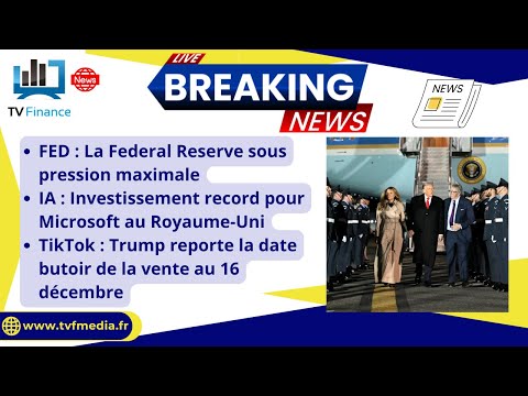 – FED : La Federal Reserve sous pression maximale – IA : Investissement record pour Microsoft au Royaume-Uni – TikTok : Trump reporte la date butoir de la vente au 16 décembre Les actualités TVFinance par Roselyne Pagès, en Direct à partir de 8H55. —————————————————————————————————– Dans ces vidéos, TV Finance vous plonge au cœur des marchés financiers pour décrypter les mouvements clés et les tendances qui impactent vos investissements. Chaque jour, nous vous offrons une analyse approfondie et des perspectives claires sur l’actualité économique et boursière. 🔔 Abonnez-vous à la chaîne pour ne manquer aucune de nos analyses : https://www.youtube.com/@TVFinance 📌 Suivez-nous et rejoignez notre communauté sur 🔹 https://x.com/TV_Finance 🔹 https://www.linkedin.com/in/r%C3%A9daction-tv-finance/ 🔹 https://www.instagram.com/tv_finance/ 🔹 https://www.facebook.com/tvfinance 🔹 https://www.tiktok.com/@tvfinancelive 👉️ Visitez notre site web pour plus d’informations : https://www.tvfmedia.fr/ 📈 Abonnez vous au service d’analyses et de recommandations de Day By Day, un service professionnel pour investisseurs privés https://www.daybyday.fr/ Découvrez son nouveau service PEA pour une valorisation à long terme de votre épargne, combinant fondamental et technique. 🎬️ https://youtu.be/PJA6X_PJWeg?feature=shared #fed #powell #trump #ia #uk #milliards #investissement #tiktok #reseausociaux #tauxdirecteurs #Bourse #Investissement #AnalyseBoursière #MarchéBoursier #TVFinance #Trading #Finance #ActualitésFinancières #CAC40 #WallStreet #StratégieInvestissement #PEA — **N’oubliez pas de liker la vidéo, de laisser un commentaire avec vos questions ou votre avis, et de la partager si elle vous a été utile !** Merci de votre soutien et à très vite pour une nouvelle analyse !