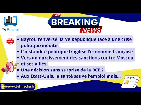 – Bayrou renversé, la Ve République face à une crise politique inédite – L’instabilité politique fragilise l’économie française – Vers un durcissement des sanctions contre Moscou et ses alliés – Une décision sans surprise de la BCE ? – Aux États-Unis, la santé sauve l’emploi mais… Les actualités TV Finance par Louis-Antoine Michelet, en Direct à partir de 8H55. —————————————————————————————————– Dans ces vidéos, TV Finance vous plonge au cœur des marchés financiers pour décrypter les mouvements clés et les tendances qui impactent vos investissements. Chaque jour, nous vous offrons une analyse approfondie et des perspectives claires sur l’actualité économique et boursière. 🔔 Abonnez-vous à la chaîne pour ne manquer aucune de nos analyses : https://www.youtube.com/@TVFinance 📌 Suivez-nous et rejoignez notre communauté sur 🔹 https://x.com/TV_Finance 🔹 https://www.linkedin.com/in/r%C3%A9daction-tv-finance/ 🔹 https://www.instagram.com/tv_finance/ 🔹 https://www.facebook.com/tvfinance 🔹 https://www.tiktok.com/@tvfinancelive 👉️ Visitez notre site web pour plus d’informations : https://www.tvfmedia.fr/ 📈 Abonnez vous au service d’analyses et de recommandations de Day By Day, un service professionnel pour investisseurs privés https://www.daybyday.fr/ Découvrez son nouveau service PEA pour une valorisation à long terme de votre épargne, combinant fondamental et technique. 🎬️ https://youtu.be/PJA6X_PJWeg?feature=shared #bayrou #françoisbayrou #economy #politique #bce #sanctionsonrussia #medicaid #Bourse #Investissement #AnalyseBoursière #MarchéBoursier #TVFinance #Trading #Finance #ActualitésFinancières #CAC40 #WallStreet #StratégieInvestissement #PEA — **N’oubliez pas de liker la vidéo, de laisser un commentaire avec vos questions ou votre avis, et de la partager si elle vous a été utile !** Merci de votre soutien et à très vite pour une nouvelle analyse !