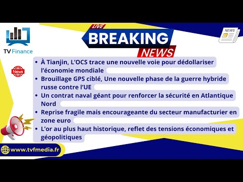 – À Tianjin, L’OCS trace une nouvelle voie pour dédollariser l’économie mondiale – Brouillage GPS ciblé, Une nouvelle phase de la guerre hybride russe contre l’UE – Un contrat naval géant pour renforcer la sécurité en Atlantique Nord – Reprise fragile mais encourageante du secteur manufacturier en zone euro – L’or au plus haut historique, reflet des tensions économiques et géopolitiques Les actualités TV Finance par Louis-Antoine Michelet, en Direct à partir de 8H55. —————————————————————————————————– Dans ces vidéos, TV Finance vous plonge au cœur des marchés financiers pour décrypter les mouvements clés et les tendances qui impactent vos investissements. Chaque jour, nous vous offrons une analyse approfondie et des perspectives claires sur l’actualité économique et boursière. 🔔 Abonnez-vous à la chaîne pour ne manquer aucune de nos analyses : https://www.youtube.com/@TVFinance 📌 Suivez-nous et rejoignez notre communauté sur 🔹 https://x.com/TV_Finance 🔹 https://www.linkedin.com/in/r%C3%A9daction-tv-finance/ 🔹 https://www.instagram.com/tv_finance/ 🔹 https://www.facebook.com/tvfinance 🔹 https://www.tiktok.com/@tvfinancelive 👉️ Visitez notre site web pour plus d’informations : https://www.tvfmedia.fr/ 📈 Abonnez vous au service d’analyses et de recommandations de Day By Day, un service professionnel pour investisseurs privés https://www.daybyday.fr/ Découvrez son nouveau service PEA pour une valorisation à long terme de votre épargne, combinant fondamental et technique. 🎬️ https://youtu.be/PJA6X_PJWeg?feature=shared #tanjin #ocs #xijinping #poutine #ursulavonderleyen #russieukraine Bourse #Investissement #AnalyseBoursière #MarchéBoursier #TVFinance #Trading #Finance #ActualitésFinancières #CAC40 #WallStreet #StratégieInvestissement #PEA — **N’oubliez pas de liker la vidéo, de laisser un commentaire avec vos questions ou votre avis, et de la partager si elle vous a été utile !** Merci de votre soutien et à très vite pour une nouvelle analyse !