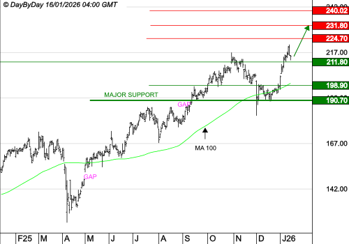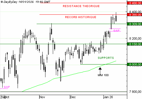 La tendance de fond est clairement orientée à la hausse. Les cours progressent encore, mais le mouvement montre moins de puissance.