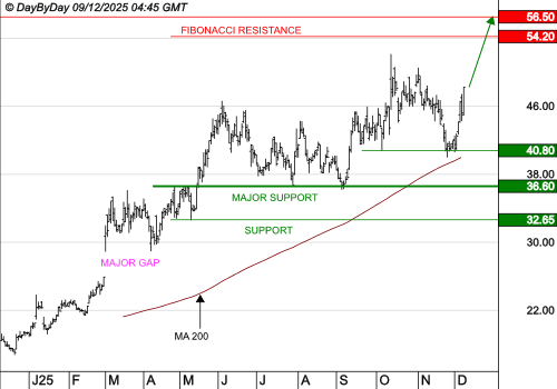 La prochaine résistance est à 251,21 €. La rupture du support à 214,10 € invaliderait cette tendance.