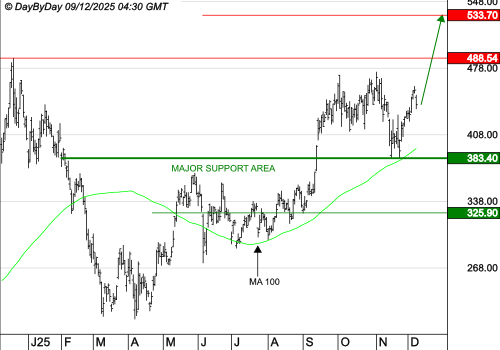 La tendance de fond est clairement orientée à la hausse. Les cours progressent toujours.