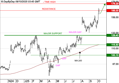 Les objectifs suivants sont à 166,0000 $ et 176,2900 $. La tendance serait invalidée sous le support à 129,4000 $.