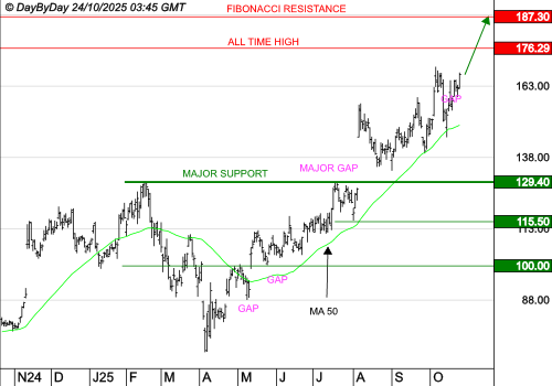 Les objectifs suivants sont à 176,2900 $ et 187,3000 $. La tendance serait invalidée sous le support à 129,4000 $.